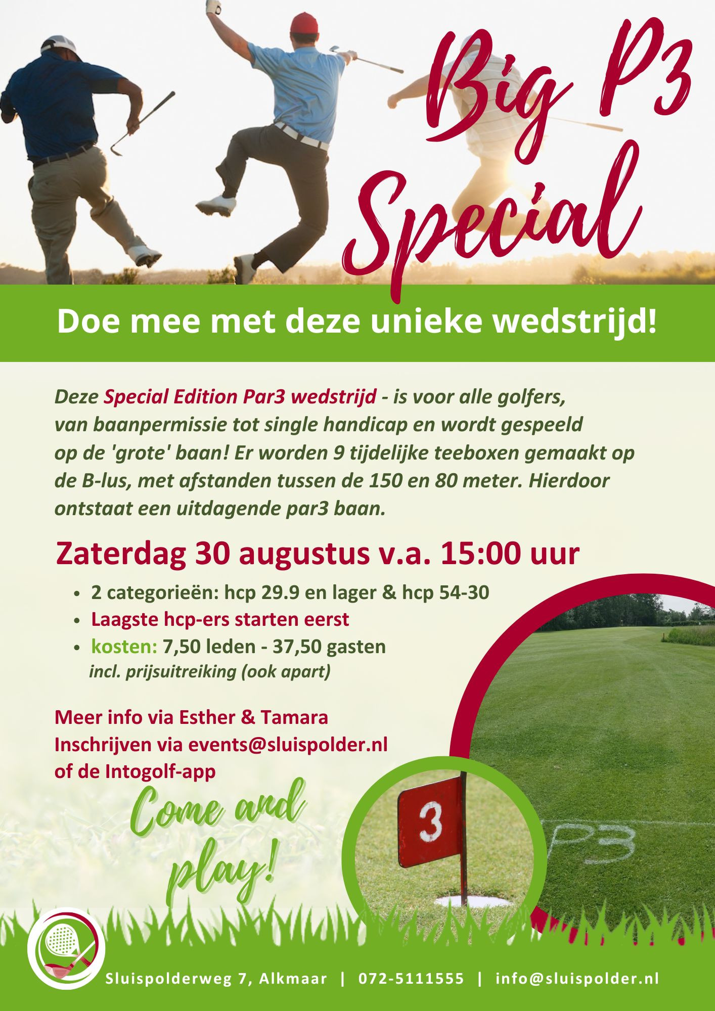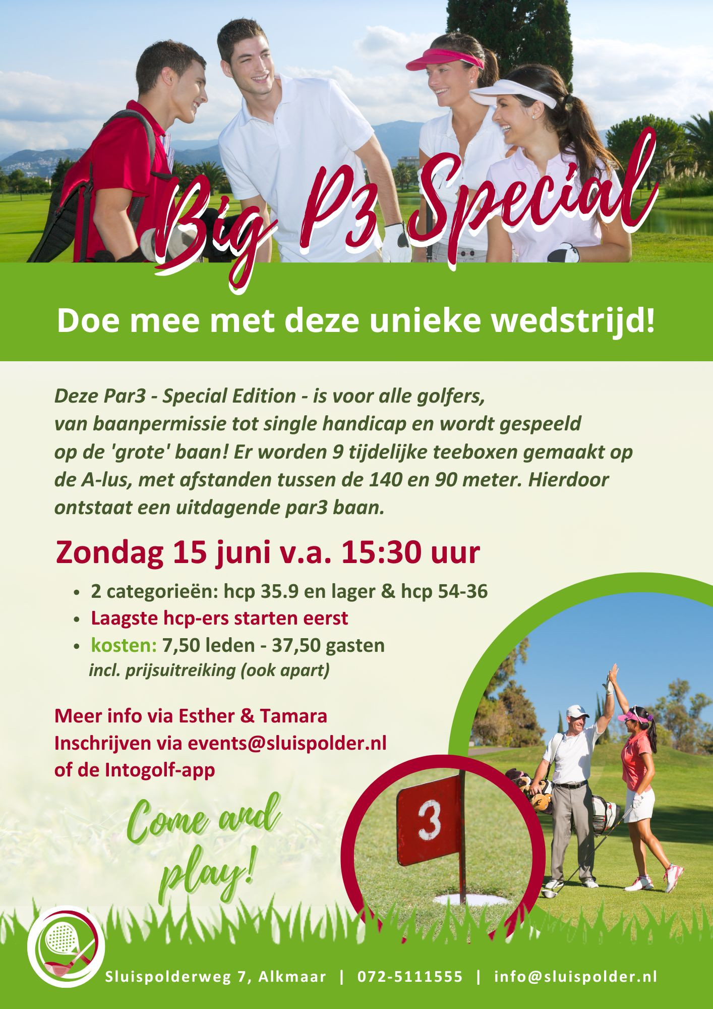 Deze - Special Edition - Par3 wedstrijd is voor álle golfers, van baanpermissie tot single handicap, en wordt gespeeld op de 'grote' baan!