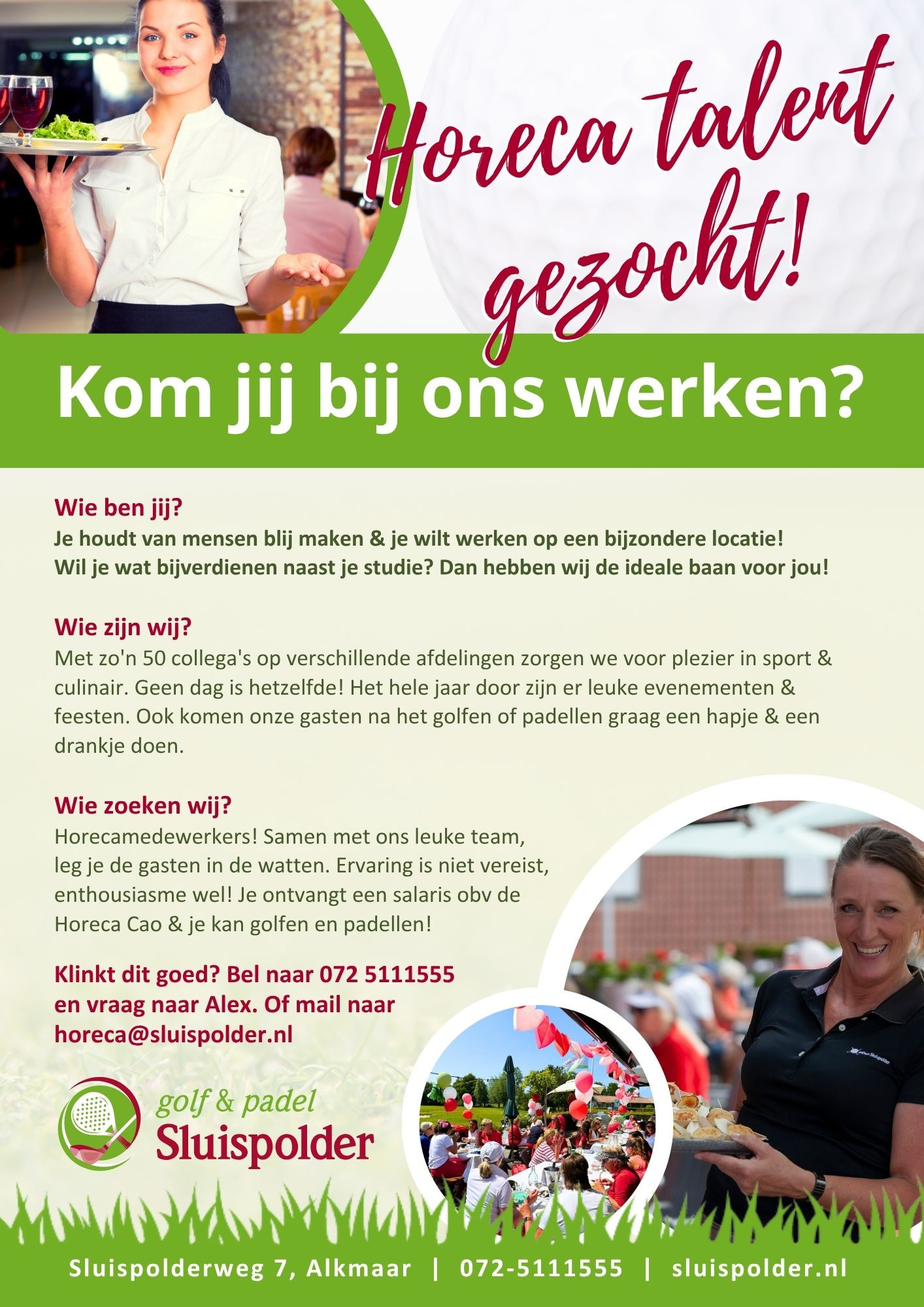 Klinkt dit goed? Bel naar 072 5111555 en vraag naar Alex. Of mail naar horeca@sluispolder.nl