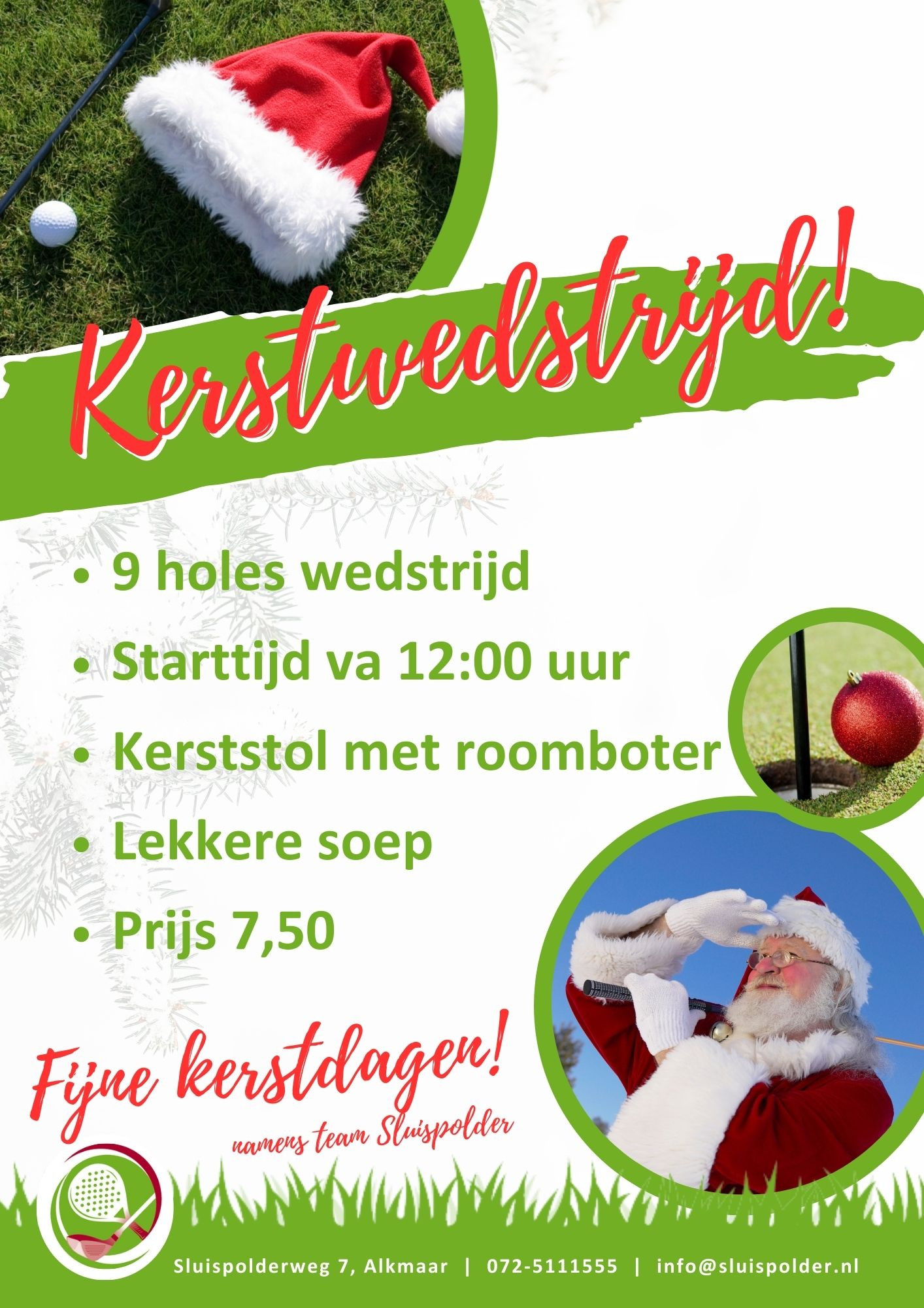 Om 12:00 uur start de kerstwedstrijd. We spelen 9 holes.