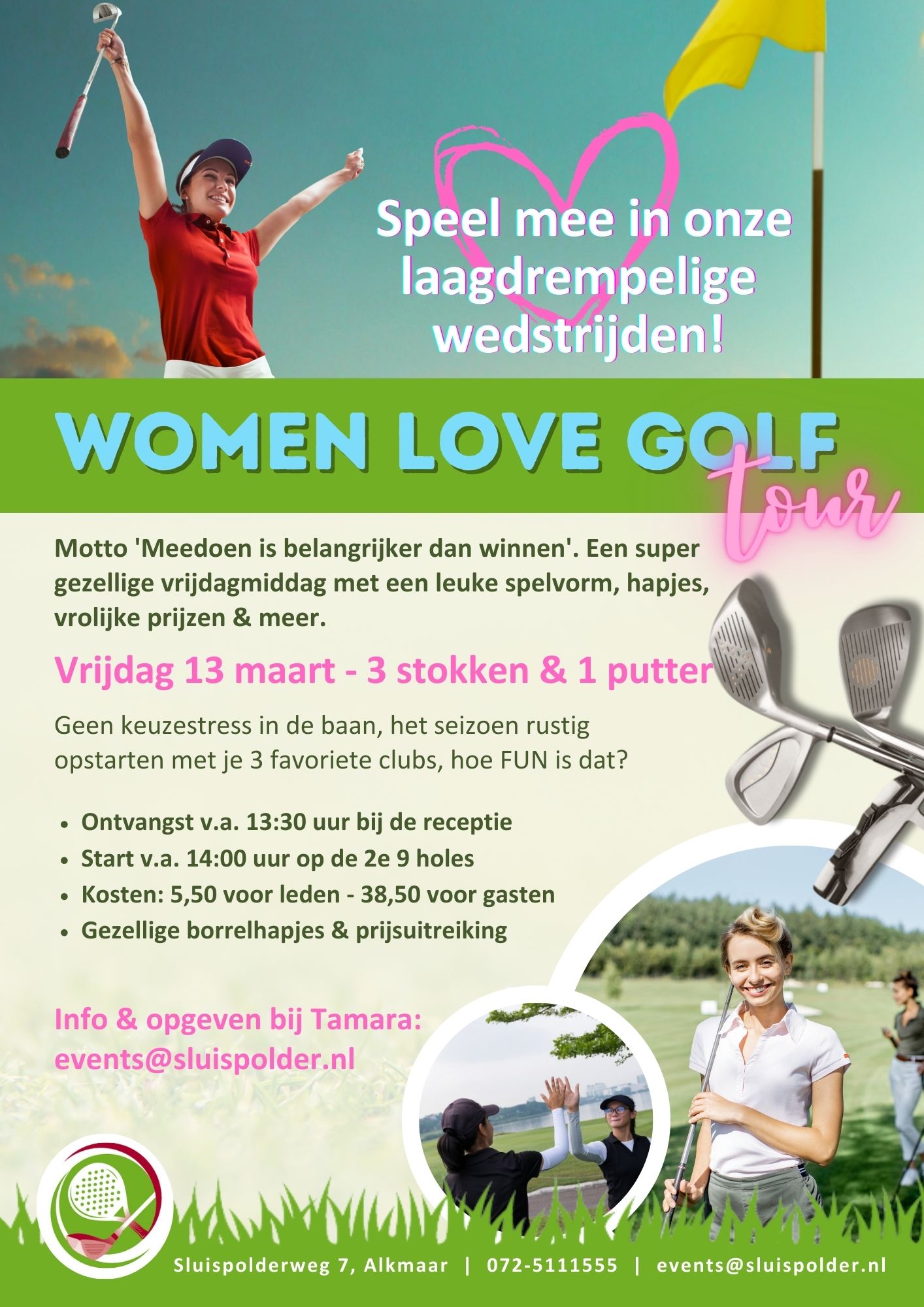 Geef je op bij Tamara via events@sluispolder.nl of in de Intogolf app via de tap; wedstrijden.