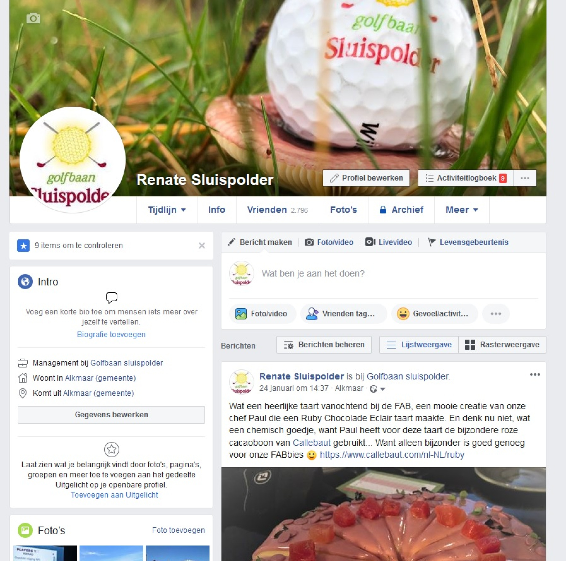 Daarnaast is op Instagram regelmaat een mooi plaatje te zien van de baan of een heerlijk gerecht.